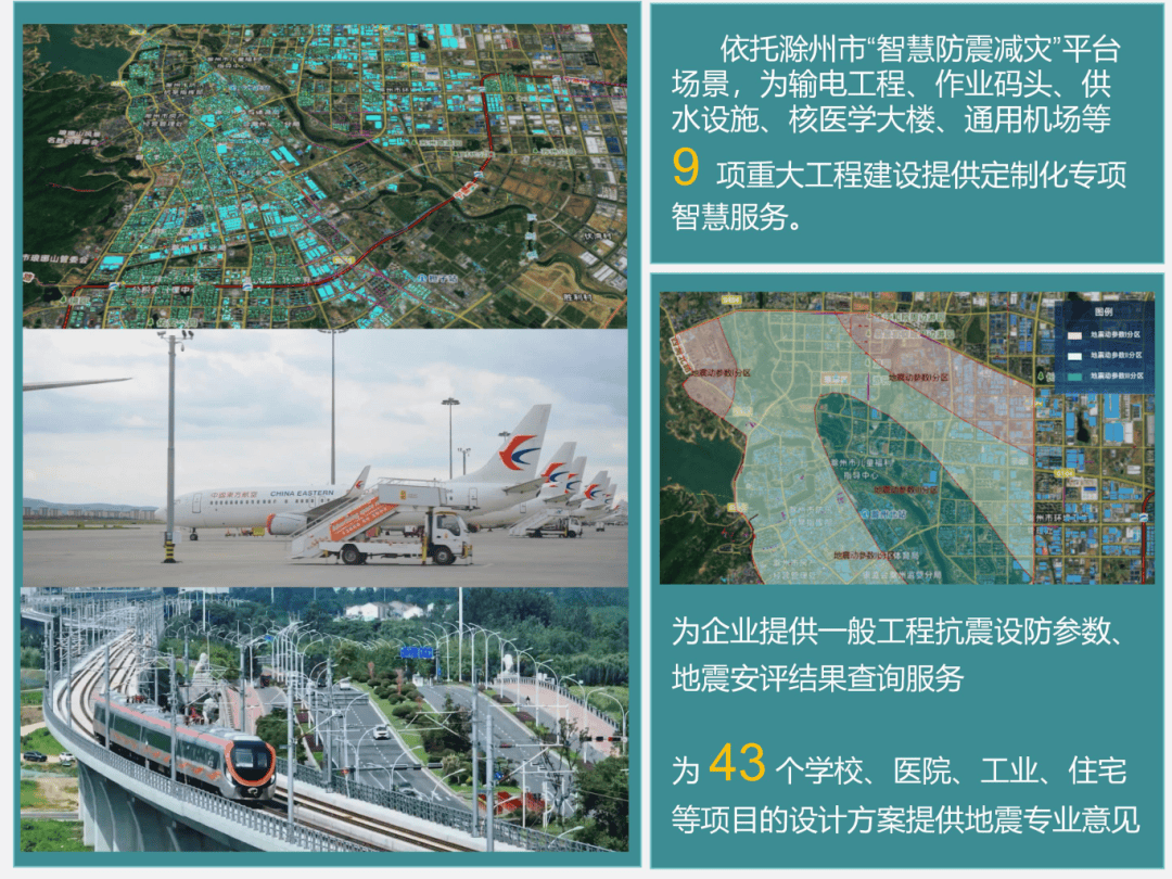 成果转化服务见成效。围绕中心服务大局,扎实做好专业服务,推动探查区划评估各项成果转化应用。2025年,依托滁州市“智慧防震减灾”平台场景,为党委政府防震减灾工作决策部署、地震应急综合演练提供数字化服务支撑;向输电工程、风电场、作业码头、供水设施、核医学大楼、通用机场等9项重大工程建设提供定制化智慧服务;为企业提供快捷便利的一般工程抗震设防参数、地震安评结果查询服务及43个学校、医院、工业、住宅等项目的设计方案提供地震专业意见。